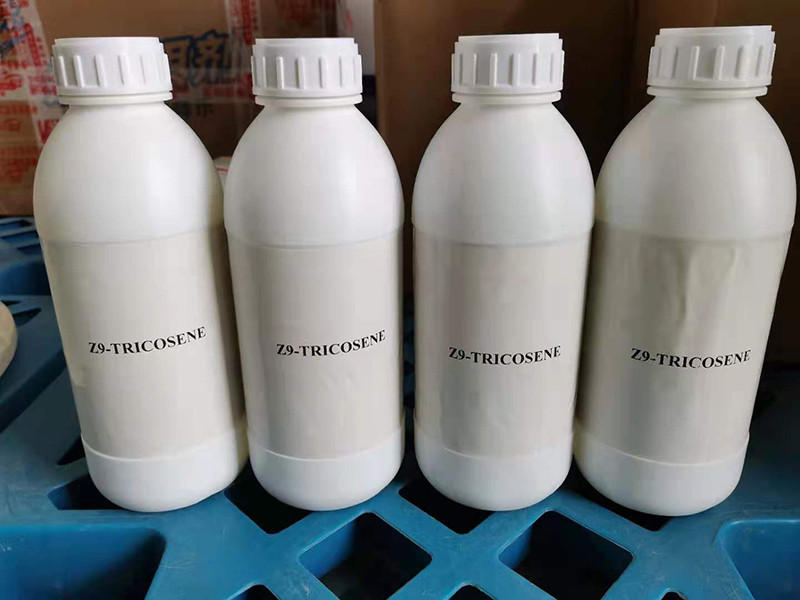 Z-9-Tricosene is a sex pheromone produced by female house flies (Musca domestica) to attract males. In bees, it is one of the communication pheromones released during the waggle dance. This product is an insect pheromone synthesized by our company using a chemical synthesis method. It has a good attracting effect on cockroaches and flies. It can improve the insecticidal efficiency of insecticides when used in combination with insecticides. This product is only used as an attractant in insecticides.