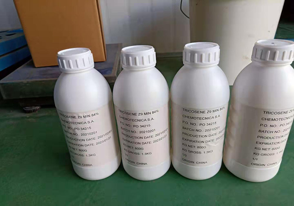 Z-9-Tricosene is a sex pheromone produced by female house flies (Musca domestica) to attract males. In bees, it serves as one of the communication pheromones released during the waggle dance. This product is an insect pheromone synthesized using chemical methods, providing excellent attraction for cockroaches and flies. When used in combination with insecticides, it significantly improves insecticidal efficiency. This product is designed exclusively for use as an attractant in insecticide formulations.